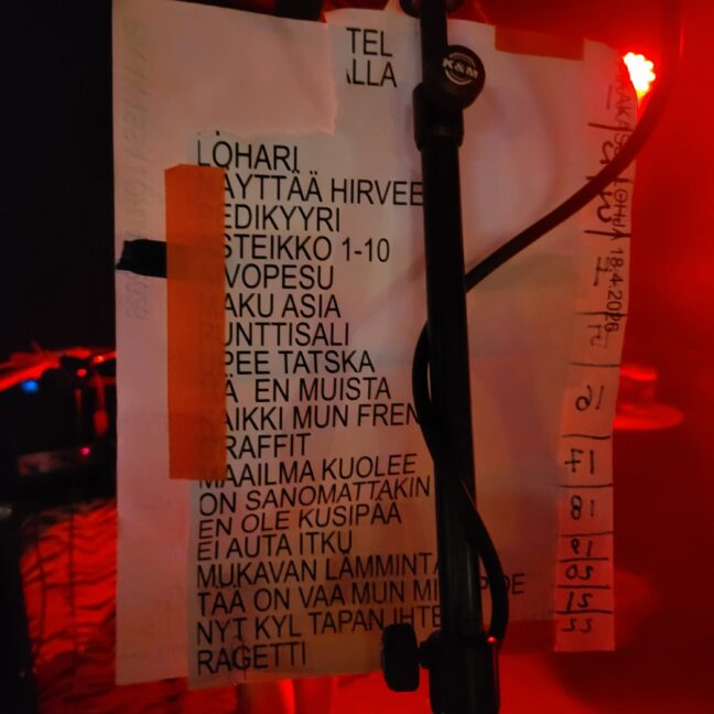 Välispiikit liikkuivat ehkä ”tavallistakin” Kassa-keikkaa laajemmalla skaalalla, Lohjalla kun oltiin. Rosoisen rymistelyn tiimellyksessä selvisi kaikenlaisia oleellisia asioita: esimerkiksi se, missä päiväkodissa solisti ja osa yleisön edustajista oli aikoinaan käynyt. Lavalla vieraili myös viisikymppisiä – ihan omiaan – juhlinut Respektorin vanha kaveri, joka lauloi myös pätkän Deicideä. Koska miksipä ei.