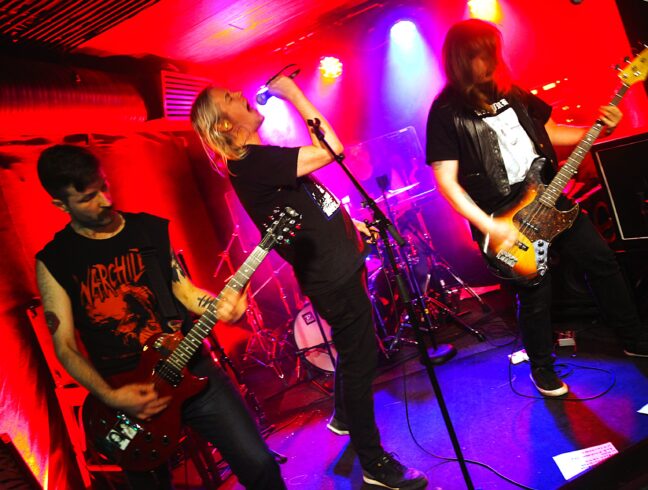 Mutta vielä, ennen kuin lähdetään raketilla lopullisesti vittuun, palataan lyhyesti illan aiempien vaiheiden tiimellykseen. Ensimmäisenä esiintynyt paikallinen The Enchained keräsi estradin eteen sankan joukon diggareita, ja miksi ei olisi kerännyt, sillä bändin punkia ja hardcorea miksannut touhu oli vakuuttavaa niin soiton, laulun kuin sävellysten osalta. Pitääkin tutustua orkesteriin tarkemmin.