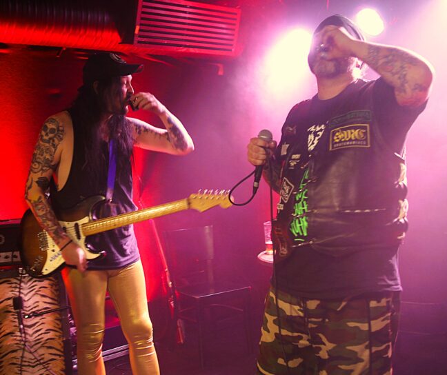 Välillä estradin suunnalta tarjoiltiin yleisölle olutta tai henkilöitä vieläkin väkevämpiä, toisinaan porukan keskeltä puolestaan ojentui käsi, tarjoten solistille nuuskaa. Kelpasi. Oheisohjelmaan kuului myös se, että eräässä kohdassa Respektor ja Spider vetäytyivät lavan takaosassa olleen pöydän ääreen virkistys- ja juomatauolle. Se tuli tarpeeseen.