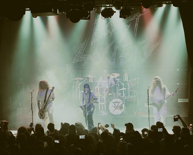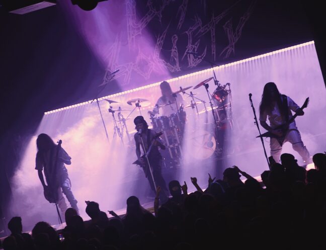 Entä sitten ne sävellykset? Se, että Lost Societyn kappalekavalkadi marssii eteenpäin laajalla rintamalla, osoittautui Tavastialla pelkäksi rikkaudeksi. Parin uusimman studioalbumin modernit ja paikoin sinfoniset sävyt, 10-vuotiaan Braindead-levyn I Am the Antidote ja vanha livesuosikki Riot sekä Fast Loud Death -debyyttilevyn nopea nuorisopaahto (Kill/N.W.L.) kättelivät toisiaan sulassa sovussa. Tämä, jos joku, kertoo isoja asioita bändin taidosta ja lahjakkuudesta.